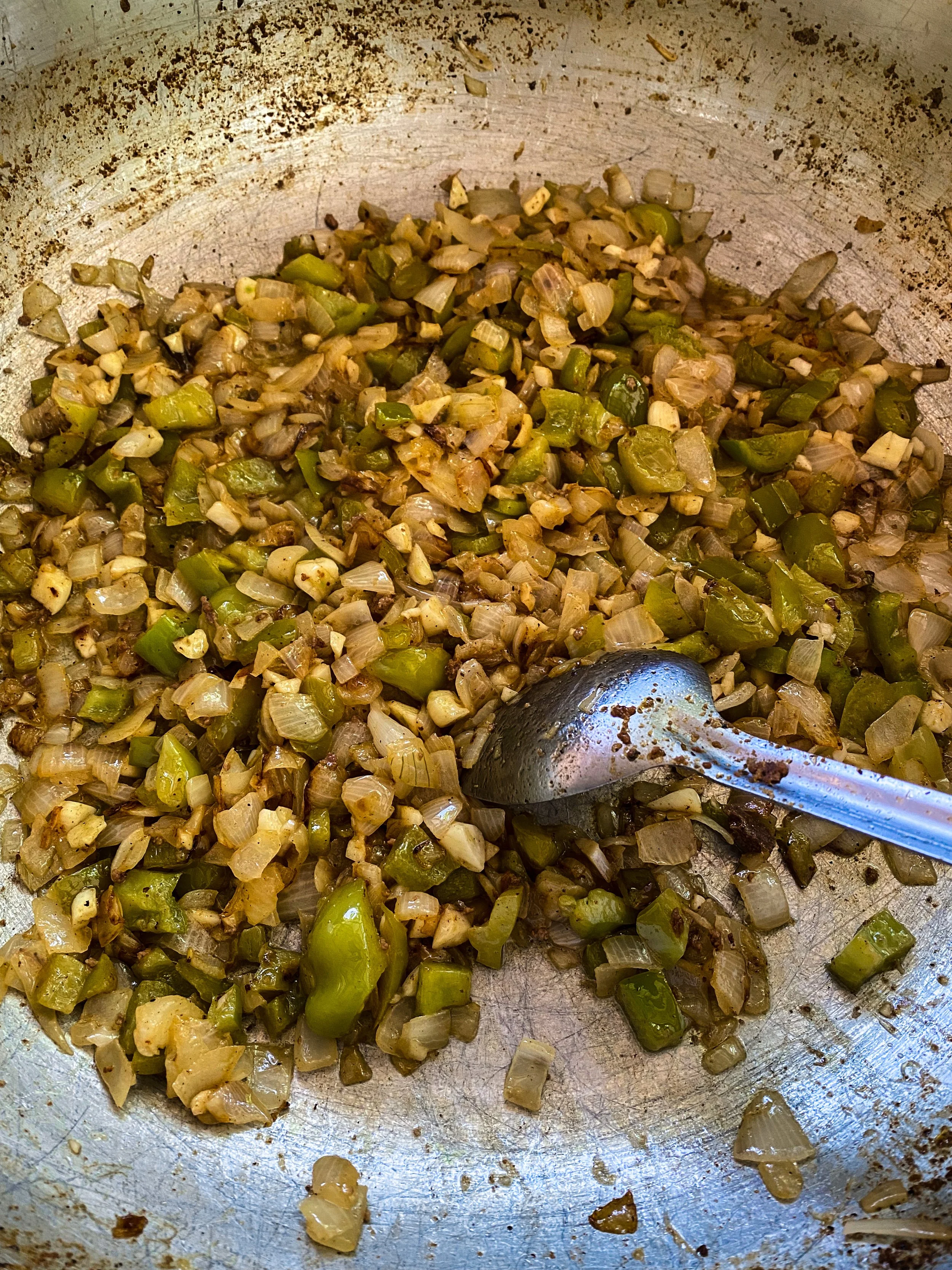 Add butter and sauté your onion, bell pepper, and garlic.