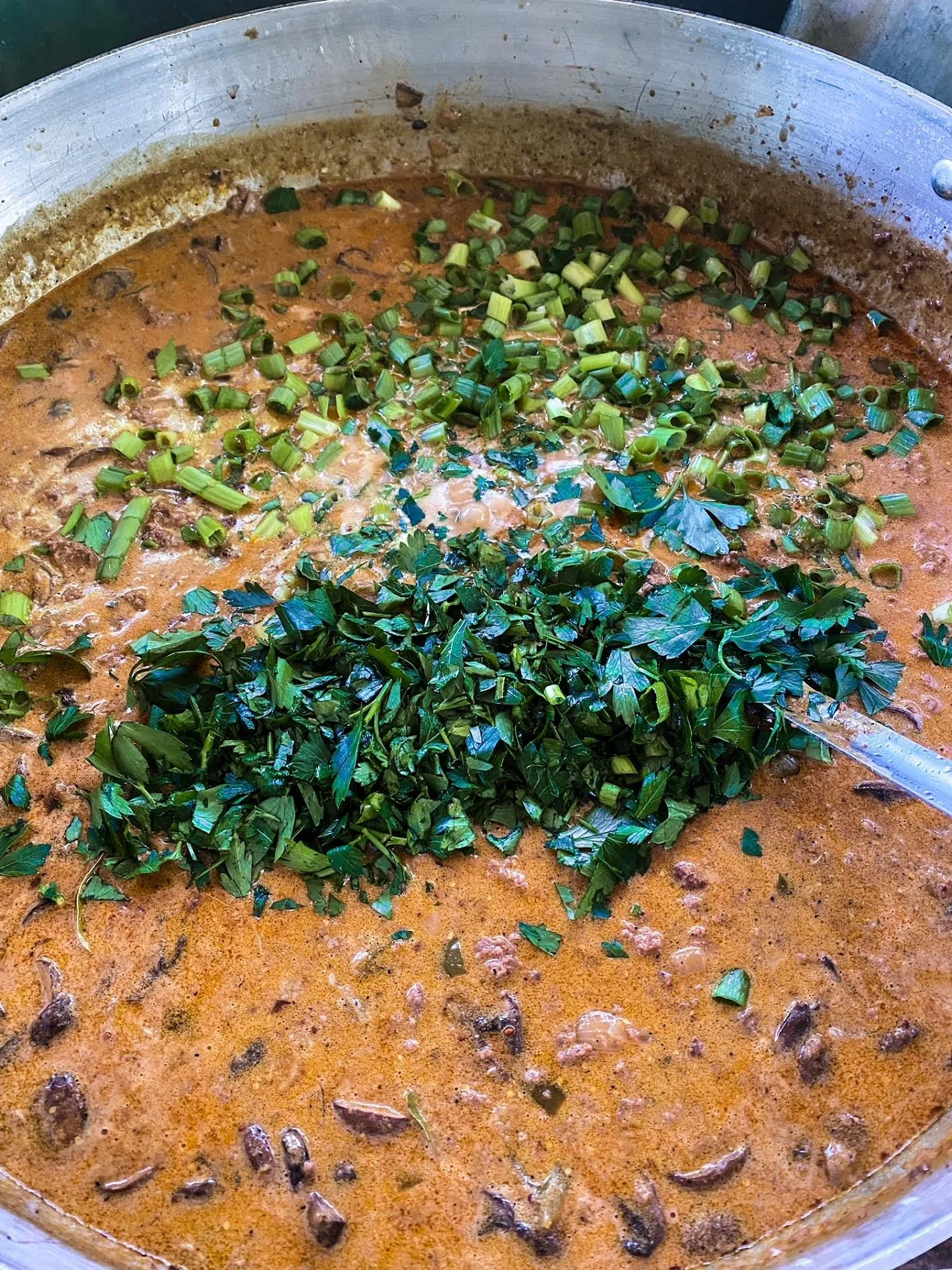 Add chopped green onions and parsley.