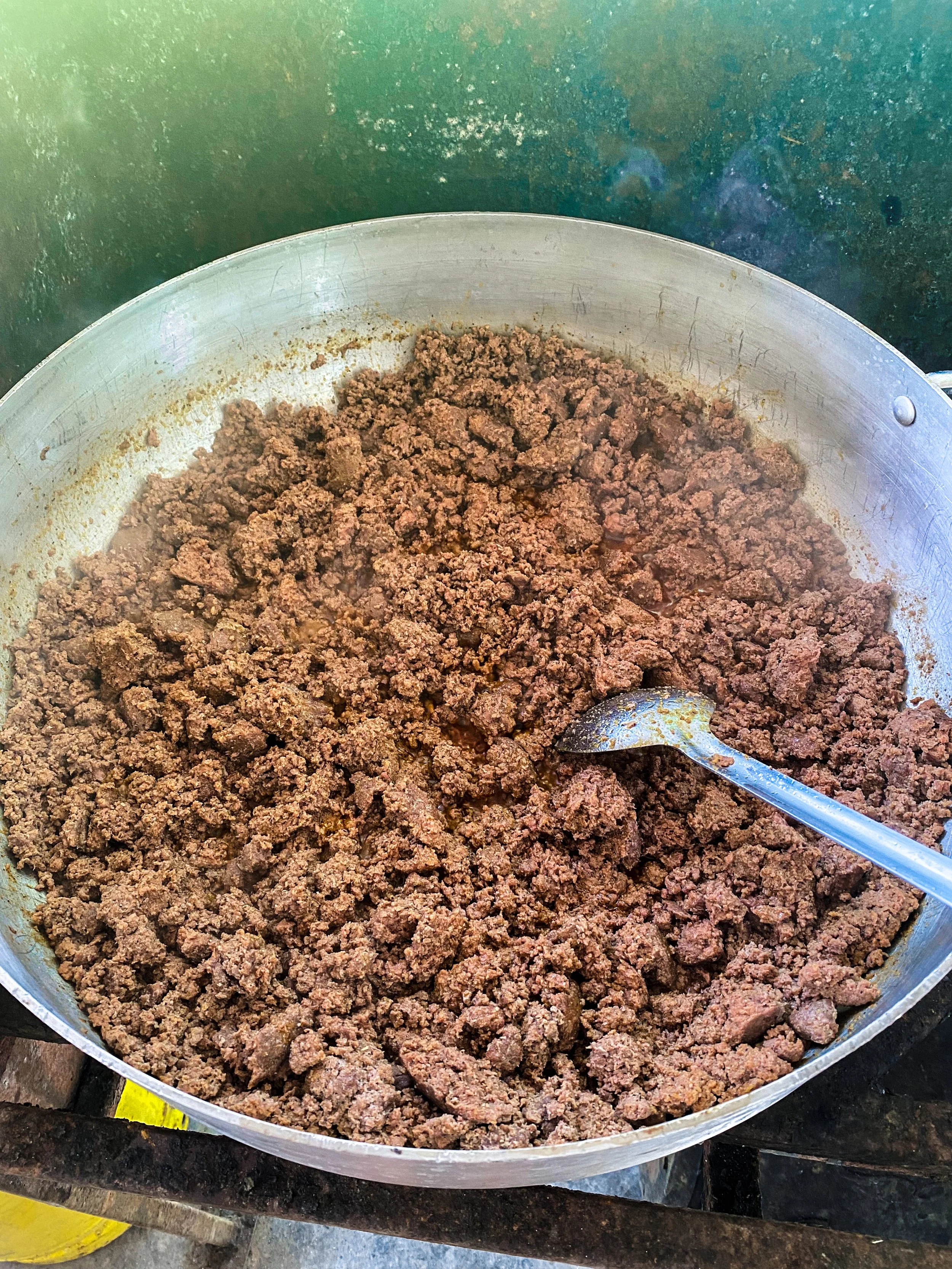 Add oil to your pot then add the ground meat. Season with red pepper, black pepper, salt, onion powder and garlic powder to taste. Once thoroughly browned, remove meat from the pot.
